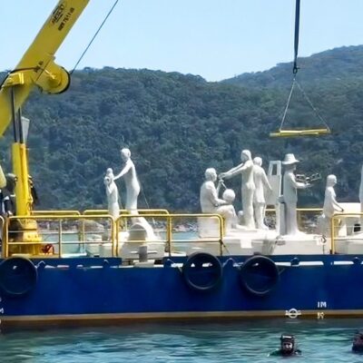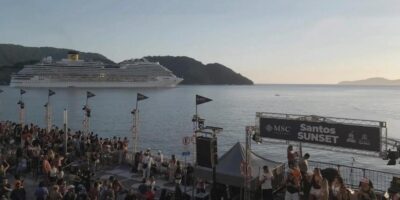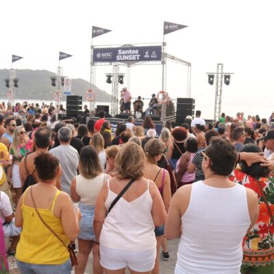 Santos Sunset ilumina a Ponta da Praia com show de luzes gigantes dos mares marcozero Ano Novo em Santos