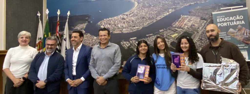 Por marcozero Compartilhe Compartilhe Santos Projeto Educação Portuária será ampliado em 2026 148 visualizações0 Por conta dos resultados extremamente positivos, o projeto Educação Portuária se prepara para uma nova fase em 2026 — com atividades ampliadas para espaços públicos e maior envolvimento da comunidade. A confirmação veio durante a cerimônia de encerramento da 1ª edição, realizada na manhã do dia 9/10, no auditório da Autoridade Portuária de Santos (APS) Na ocasião, os autores dos melhores trabalhos do concurso cultural do projeto foram premiados. O evento contou com a presença do presidente da APS, Anderson Pomini, do organizador Marco Santana, representantes da Secretaria de Educação de Santos, professores e alunos. Os autores dos melhores trabalhos em cada categoria receberam um tablet como reconhecimento. O organizador do projeto, Marco Santana, fez um balanço positivo da iniciativa e adiantou os planos para a nova edição. “O resultado superou as expectativas. O projeto ajudou a explicar o papel da autoridade portuária, seus impactos e também abordou temas urgentes como igualdade de gênero e combate ao racismo. Diante desse resultado, já projetamos novas edições, com a ideia de envolver ainda mais a comunidade e realizar atividades em espaços públicos”. Porto-CidadeO presidente da APS, Anderson Pomini, destacou o compromisso da Autoridade Portuária em fortalecer a relação do Porto com a sociedade e ampliar o alcance do projeto nos próximos anos. “O desafio agora é ampliar. Esse é o papel do Porto que estamos implementando: uma relação direta com a cidade. Há dois anos e meio, dizia-se que o Porto estava de costas para Santos, para o Guarujá, para Cubatão. Hoje, não está mais — mas ainda há um longo caminho a percorrer. Projetos como este representam o início dessa transformação e mostram o quanto é importante investirmos nessa pauta”, afirmou Pomini. Durante o mês de setembro, o Educação Portuária envolveu cerca de mil alunos de dez escolas municipais de Ensino Fundamental de Santos. As atividades foram conduzidas nos Núcleos de Jornada Ampliada da rede municipal pela contadora de histórias Camila Genaro, que apresentou a história do Porto de forma lúdica e interativa. “Contar a história de um lugar onde a gente vive desperta o sentimento de pertencimento. O Porto está inserido na nossa cidade, e levar isso para as crianças é fundamental. Cada grupo muda a história — o esqueleto é o mesmo, mas o recheio vem do público”, explicou Camila. Além das apresentações, os alunos tiveram acesso a cartilhas ilustradas e à experiência em 3D, com o uso de óculos de realidade virtual para conhecer o funcionamento do Porto de Santos. Concurso cultural Para a aluna Emanuelle Augusta de Lima Javed, de 12 anos, vencedora do concurso cultural na categoria texto, a inspiração veio das palestras e da cartilha distribuída em sala de aula. “Eu me inspirei mais na palestra que eles deram e fui lendo as páginas do livrinho. Fiquei muito feliz quando descobri que tinha ganhado”, contou a estudante da UME José Genésio e do Núcleo de Jornada Ampliada do Marapé 1. Já Alice Organ, também de 12 anos, autora do melhor desenho, destacou a diversão na produção do trabalho. “Foi uma coisa bem divertida e diferente. Peguei a inspiração de uma das imagens da própria cartilha”, disse a aluna da UME Cidade de Santos e do Núcleo de Jornada Ampliada do Marapé 1. A professora Maria Clara de Almeida Soares, responsável pelo Laboratório de Saberes do Núcleo Marapé, acompanhou o processo de criação dos alunos e ressaltou o envolvimento da turma. “Eles tiveram a visita da equipe que explicou o funcionamento do Porto e depois relembramos tudo em aula. Trabalhamos com as imagens e com o que eles entenderam, tanto na atividade de texto quanto de desenho. Foi um aprendizado muito rico.” O coordenador do Núcleo de Jornada Ampliada do Marapé, Felipe da Silva Marques Sales, destacou a importância de aproximar os estudantes do Porto da cidade onde vivem. “O projeto conversa com a proposta da educação integral, que busca integrar os espaços da cidade e reforçar o sentimento de pertencimento. Os alunos precisam compreender os locais da cidade como parte deles. O resultado foi muito positivo para os estudantes e para o núcleo”. Sobre o projetoO Educação Portuária é uma realização da Marco Zero Conteúdo, com patrocínio da Autoridade Portuária de Santos (APS), por meio do Ministério de Portos e Aeroportos do Governo Federal, e apoio da Prefeitura de Santos, Extecil Santos e Self Logística. Compartilhe