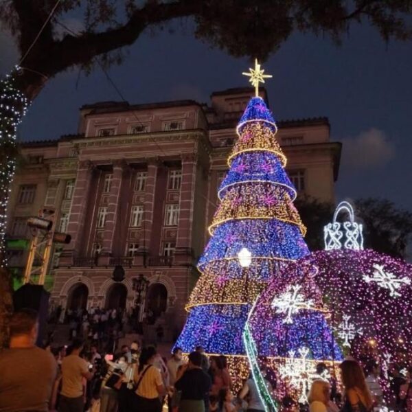 Santos Sunset ilumina a Ponta da Praia com show de luzes gigantes dos mares marcozero Ano Novo em Santos